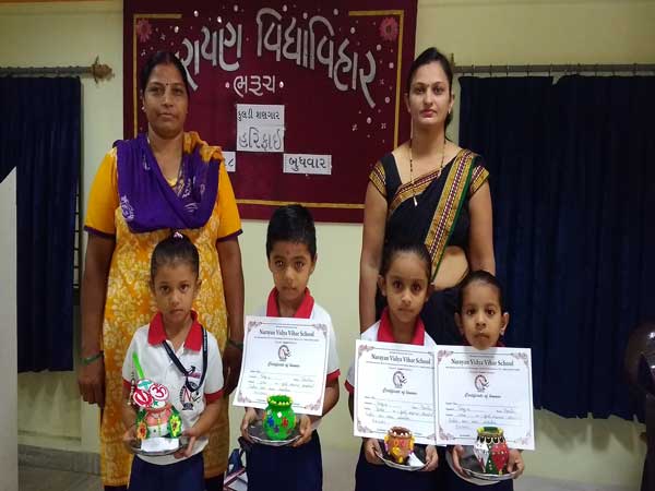 We had arrange the in house project but it become special because on second day of katha the Education Minister of Gujarat Mr. Bhupendrasinh Chudasama, Mr. Ishwarsinh Patel (Minister of State, Co-operation, Sports, Youth and Cultural activities) specially be the part of the program. It was memorable moment for all the students and staff of school.